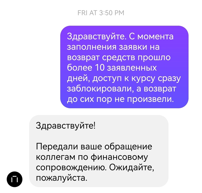 После заполнения формы, мне заблокировали доступ к курсам, но затем просто забыли инициировать возврат средств. Пришлось напоминать: