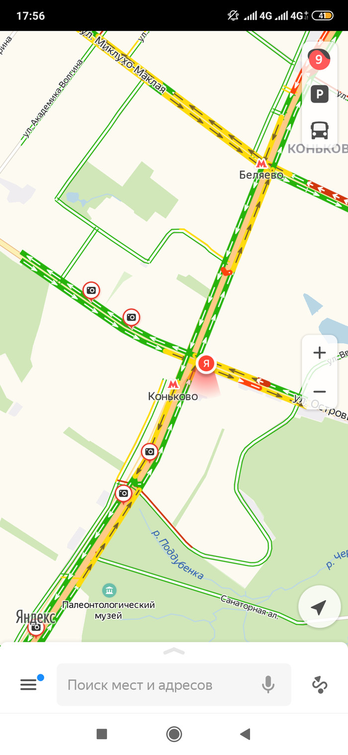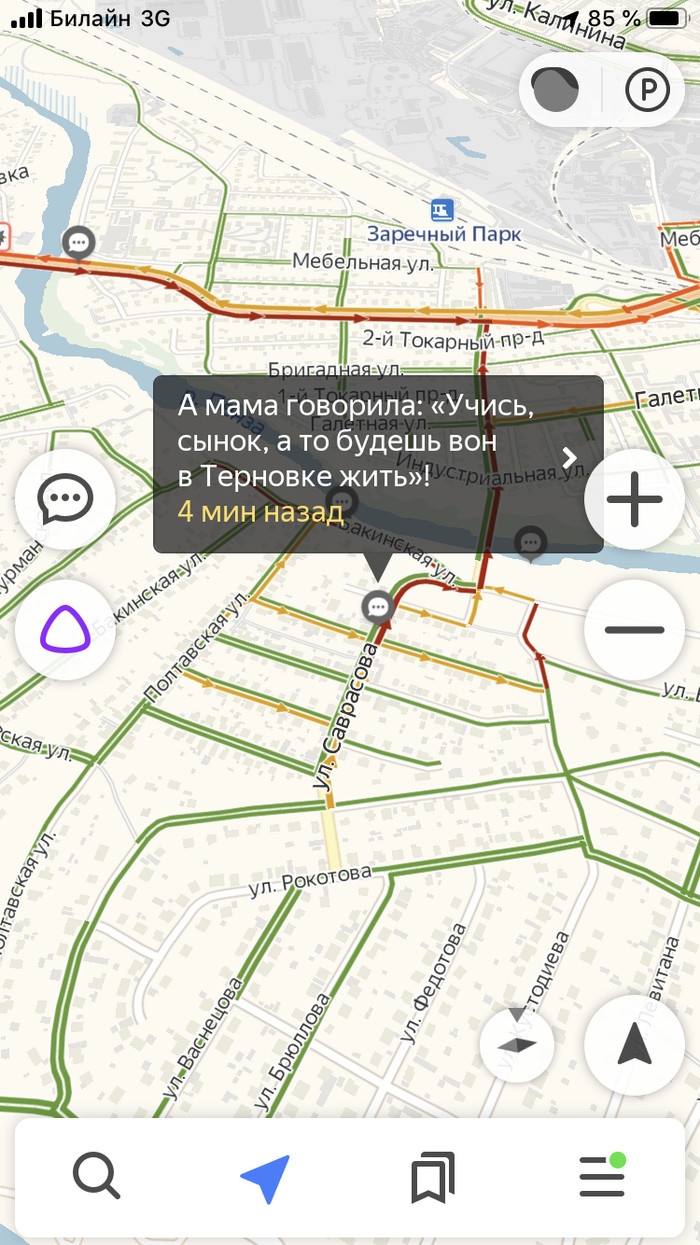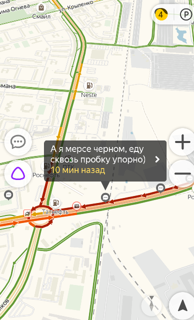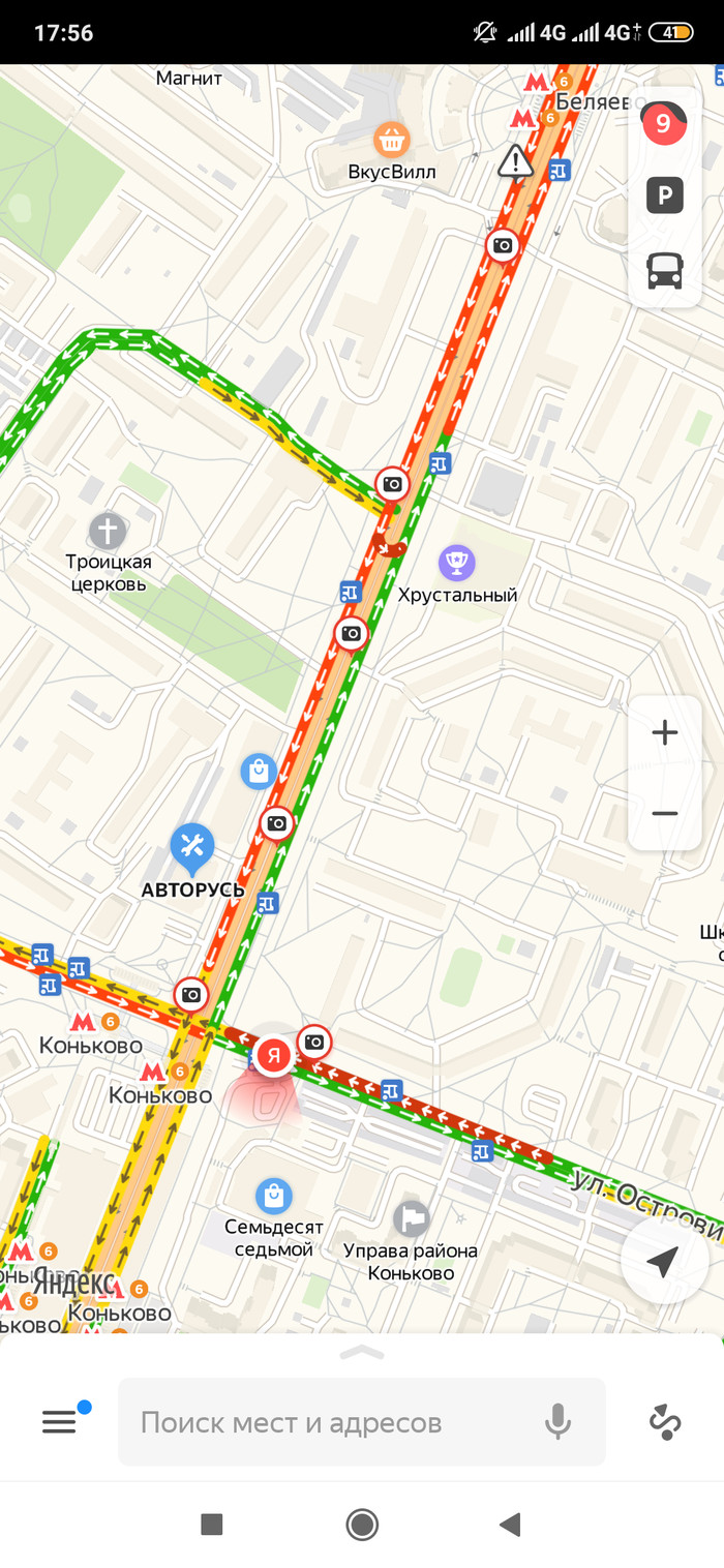 Снимок сделан в одно время, но на разном удалении, из серии смотришь общую ситуацию на дороге-9 баллов, но по нужному направлению зелёное, приближаешь-опа уже не красная, а бордовая...