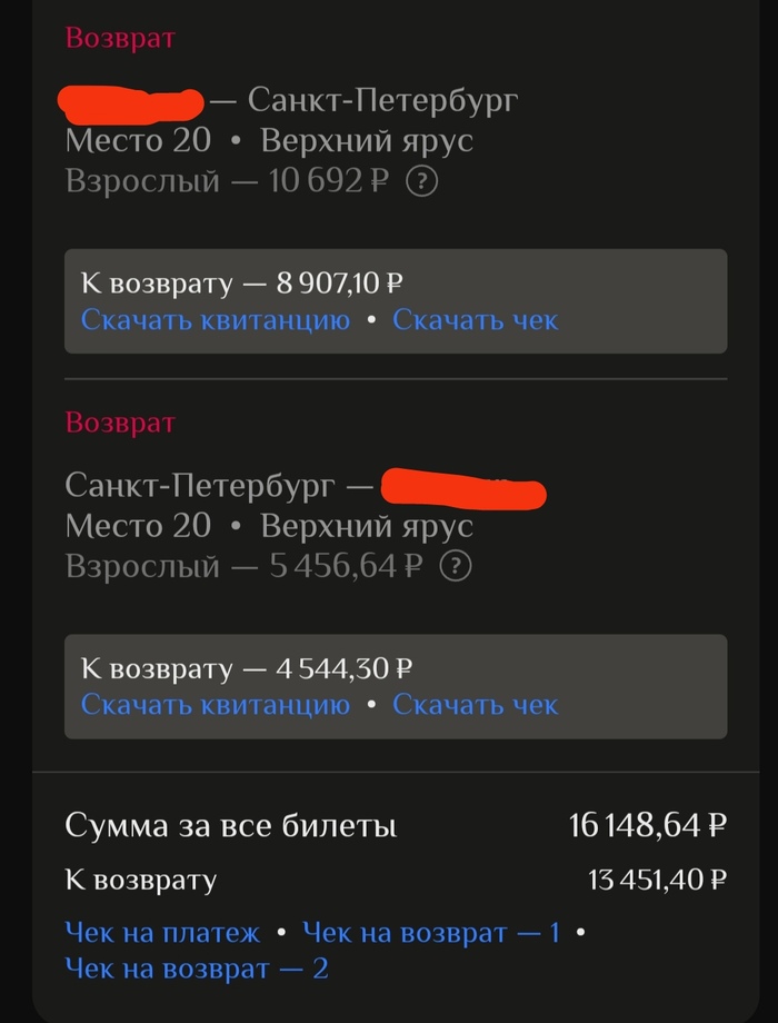 Но в связи с тем, что я нахожусь на СВО, все в один момент пошло прахом. Отпуск перенесся на неопределённое время. Я погоревал и решил оформить возврат за билеты.