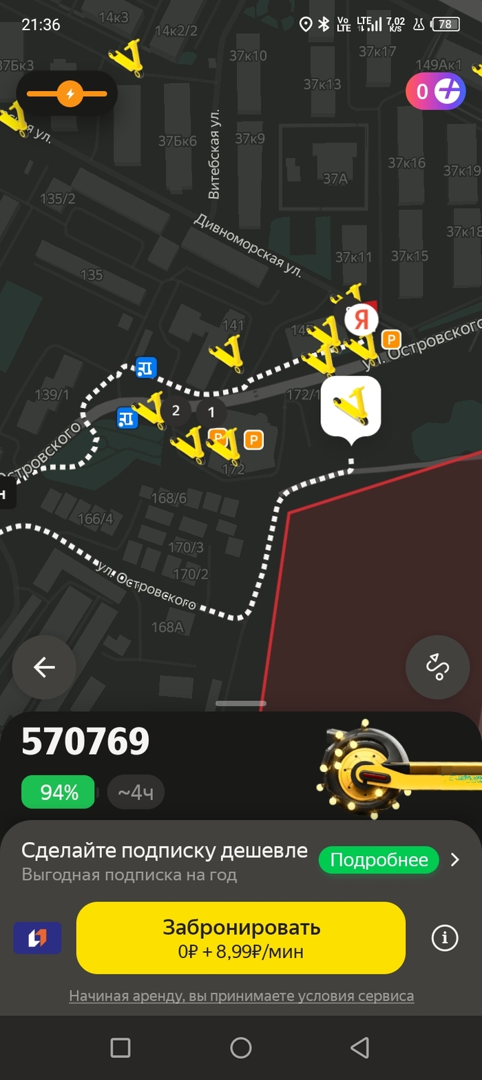 на прошлой неделе была ситуация ещё интереснее, подошёл к самокату, отсканировал код, а он не поехал, очередной сбой gps якобы там проезд запрещён, что самое интересное, решил оставить самокат на месте, но обломинго, там парковать оказывается низзя, хотел было написать в "поддержку" но время было позднее, да и уставший я был для общения с ботами, пришлось катить метров двести, пока самокат не "одуплился" и не поехал нормально, благо дорога была не в гору!