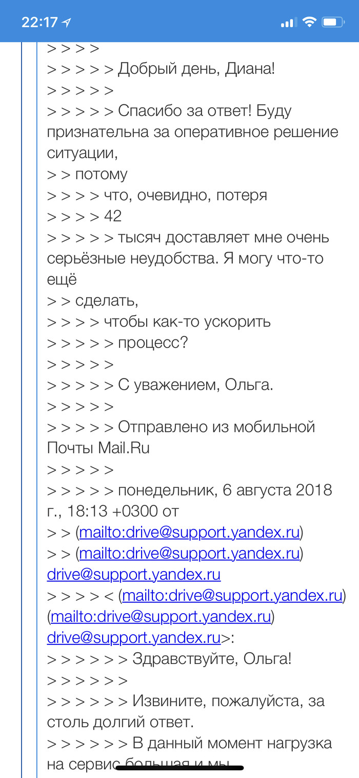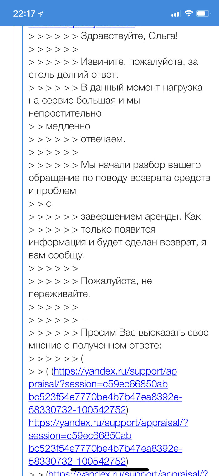 Отвечали мне, конечно, "непростительно долго" и, конечно, не приходило никакое уведомление о регистрации входящего обращения, я вообще не была уверена, что мое письмо ушло в Яндекс.