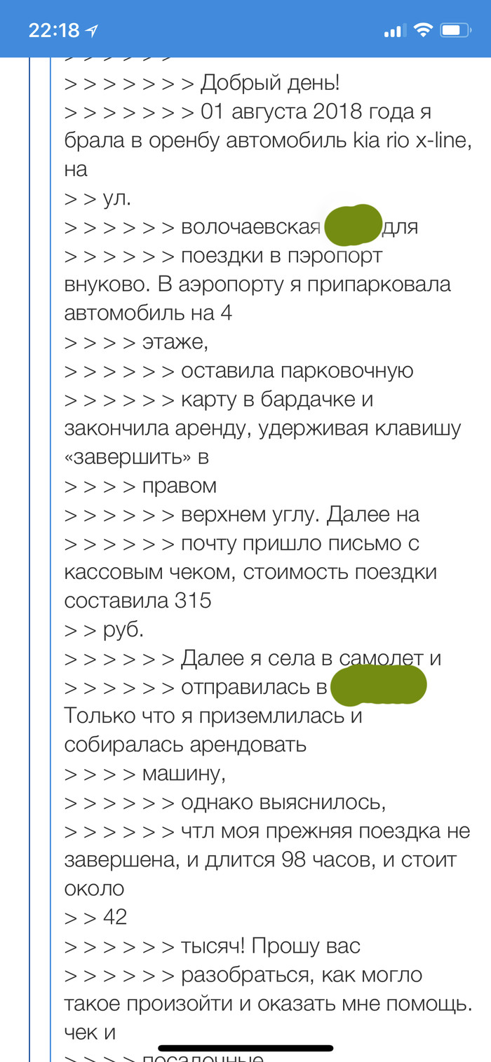 Провела чудесные четыре дня отпуска и вернулась в столицу в аэропорт Домодедово. Первым делом я зашла в приложение, чтобы узнать, могу ли я взять такой чудесный каршеринг в аренду в Домодедово. С удивлением я обнаружила, что таймер предыдущей поездке активен на 98 часах аренды и счетчик показывал сумму к оплате 42074 рубля.