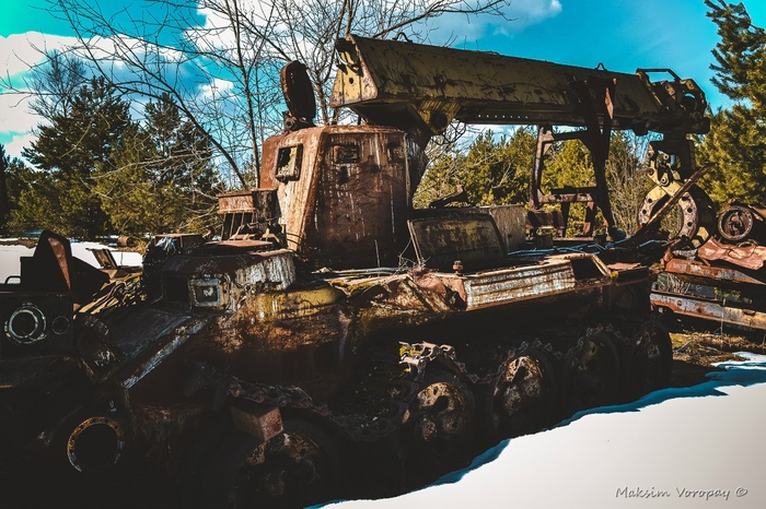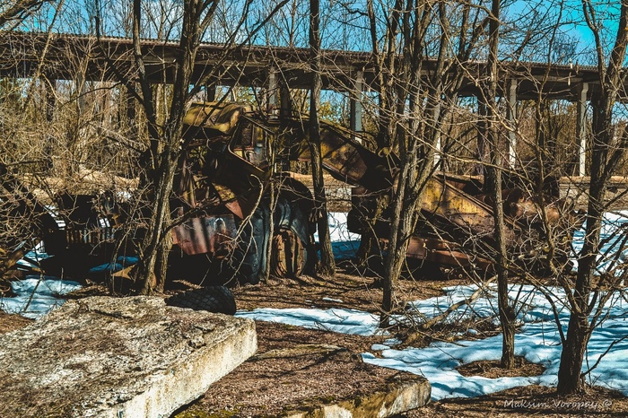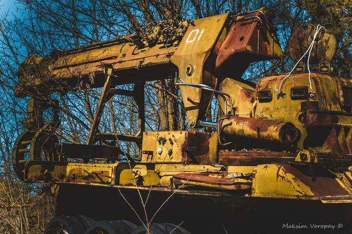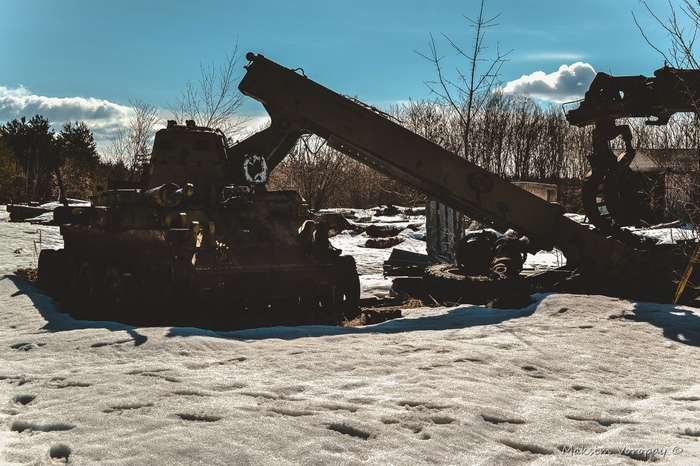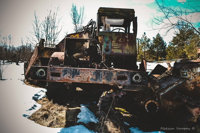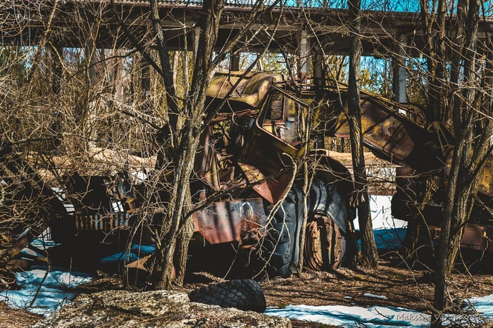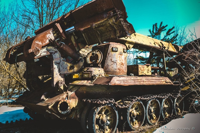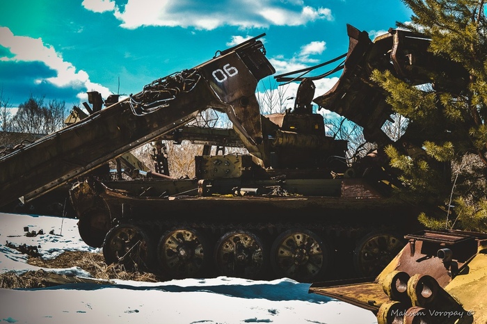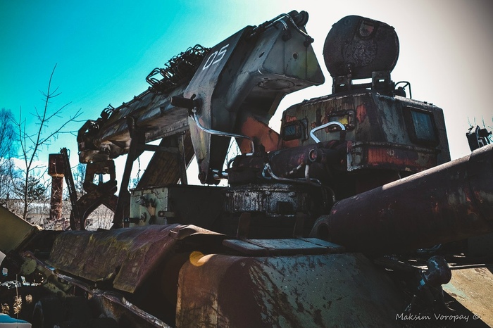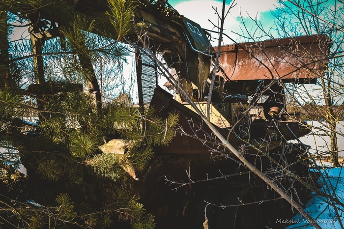 Наш путь лежал к месту отстоя военной техники.  последней стоянки машин, которые были свидетелями и непосредственными учасниками событий в первые дни работ на ликвидации последствий аварии 4 энергоблока Чернобыльской атомной электростанции.