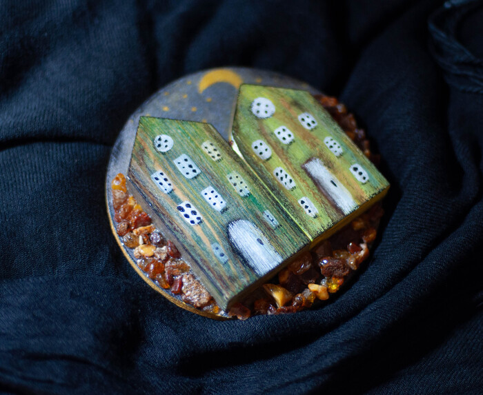 Мини-панно с янтарем "ночной городок "⁠⁠