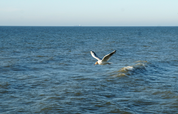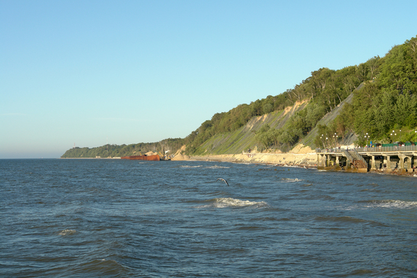 Первая наша встреча была в Светлогорске - прохладно, небольшой ветерок, волн практически нет, вода - красивая синяя. И чайки.