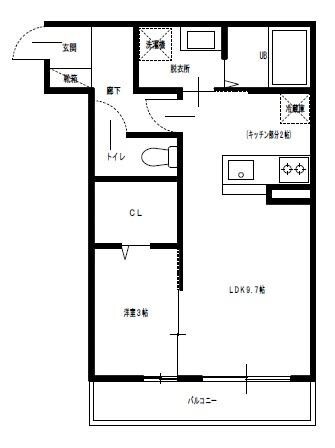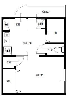 Вверху плана справа прихожая (玄関) . В Японии по дому в обуви не ходят. Обязательно снимают в прихожей и ставят в шкафчик (или так бросают))). Прихожая всегда отделена от основной квартиры ступенькой - уличная грязь не расползается по квартире. Справа место под стиральную машину (洗濯機) в этом месте сделан поддон, часто он един с полом и слив; далее встроенный шкаф для одежды CL, обычно двери идут книжкой и два уровня вешал; и ниже место под холодильник (冷蔵庫).