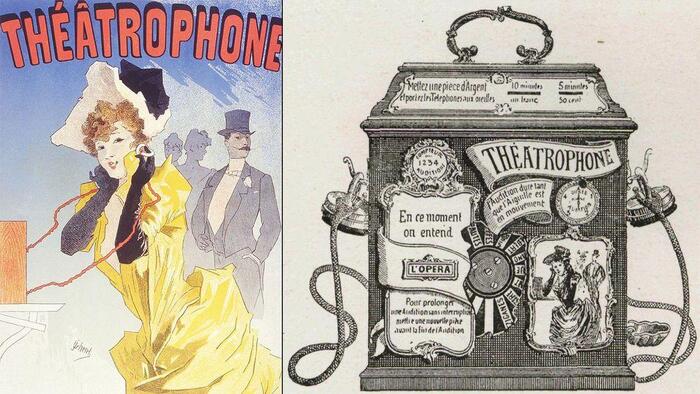 Театрофон — это особое устройство Клемана Адера, которое позволяло уже в 1880-х насладиться оперой или спектаклем из вашей квартиры или отеля. Звучит сказочно, но это правда —опустим такие скучные подробности, как необходимость держать руками головные телефоны и высокую стоимость этого развлечения.