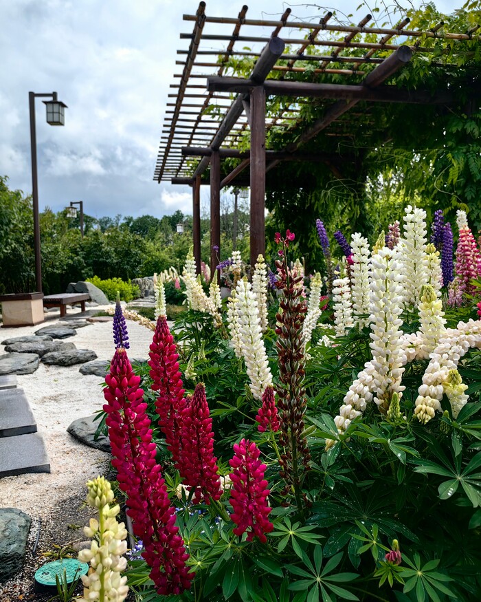 Сразу при входе растет японский крыжовник. Ягод пока нет, садовник объяснил, что первые пятьсот лет дереву нужно «настояться», а потом уже можно получать урожай.