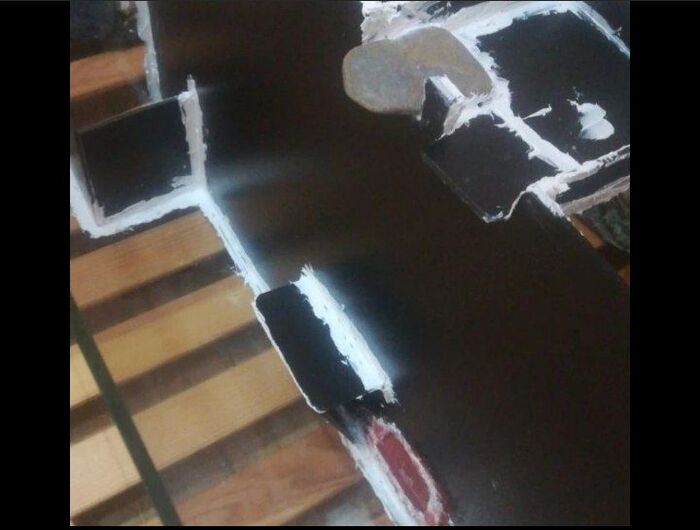 Внутри основная конструкция из пвх, склеенная силиконовым клеем. Система подачи воды наверх через насос, к которому протоптана секретная дорожка для воды из фасадного "озера". Эта работа заняла около месяца. Собственно, немножко процесса: