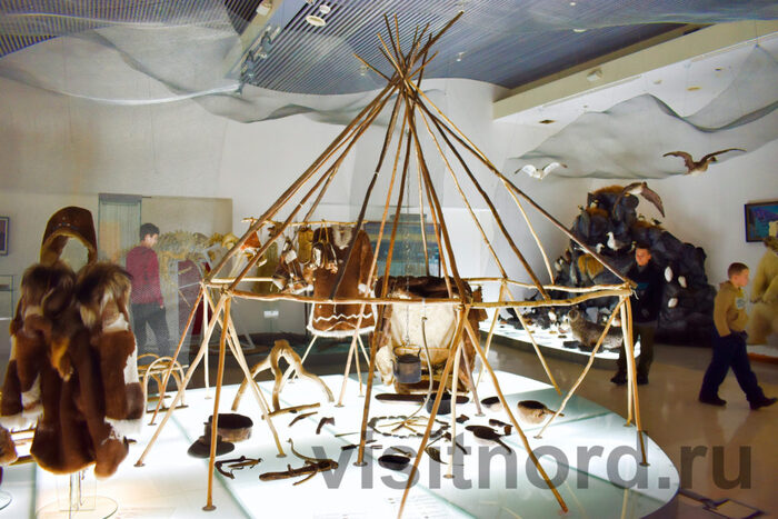 По своей сути, чум – это переносная палатка конусообразной формы. Она отлично приспособлена к местным условиям. Во-первых, его форма делает его очень устойчивым к ветрам и метелям. Во-вторых, благодаря такой форме, снег всегда скатывается вниз, и снять чум для переезда не составляет труда.