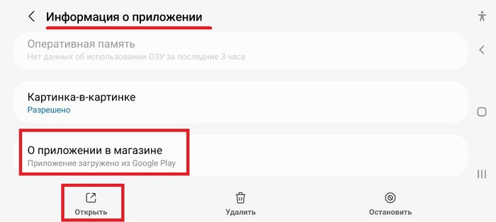 Нажав на него, вы попадете на страницу приложения в "Google Play", где опять появится кнопка "Открыть"