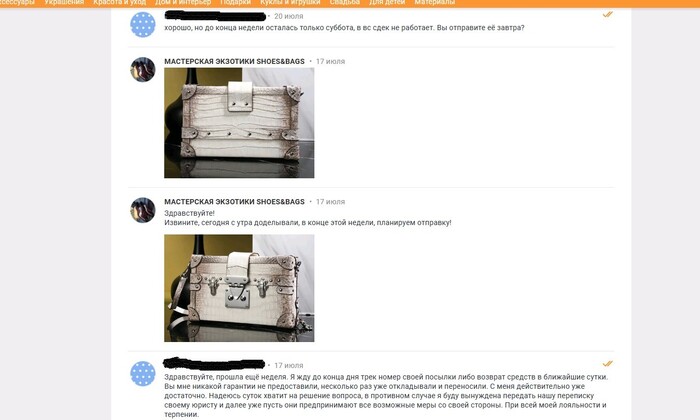 Как жена сумочку у мастера покупала (нет). Или обман на ярмарке мастеров от мастерской экзотики shoes&bags1