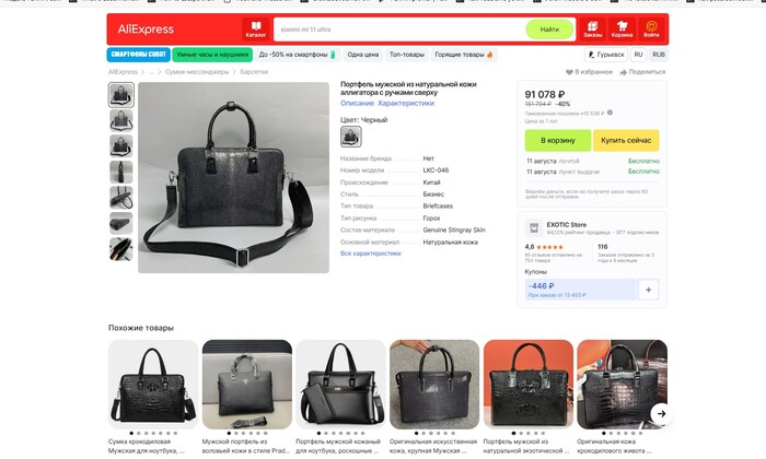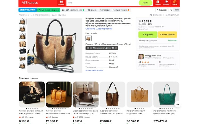 Тут сомнения превратились в уверенность, мы вбили данное фото сумки в поиск.