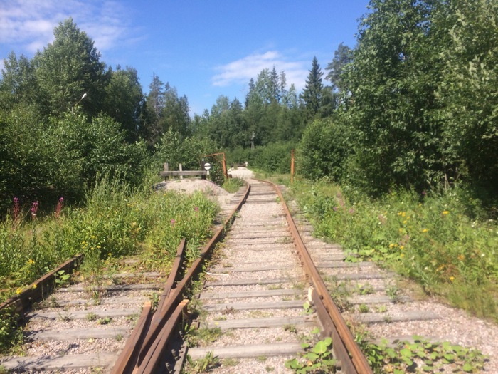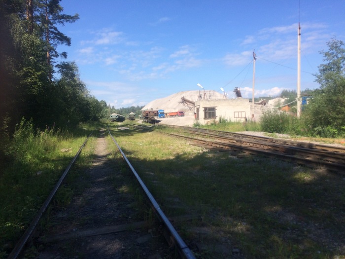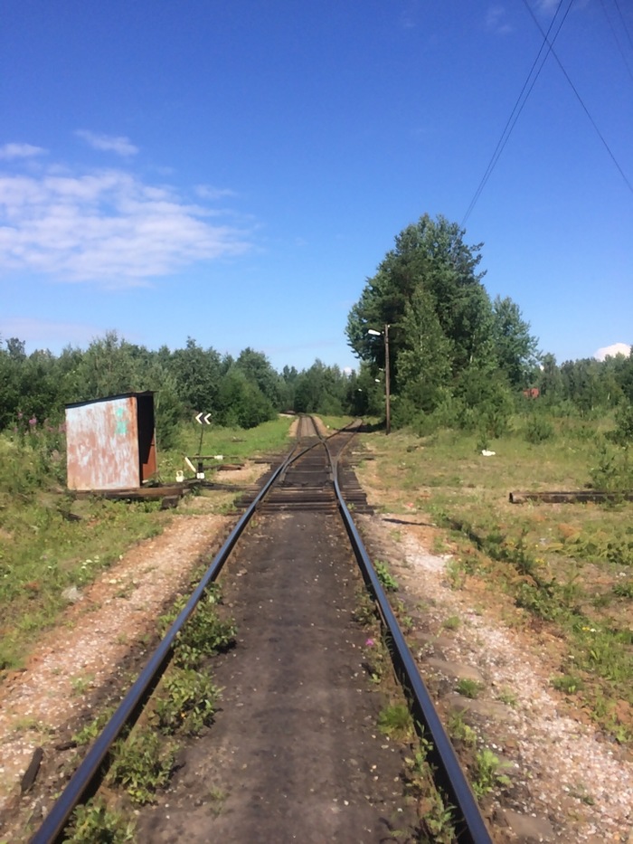 Как вышли с электрички, пошли налево, мимо двух магазинов прямо до Т-образного перекрестка. На перекрестке повернули налево, там ж/д переезд. Повернули направо на последние по ходу движения пути и пошагали по шпалам.