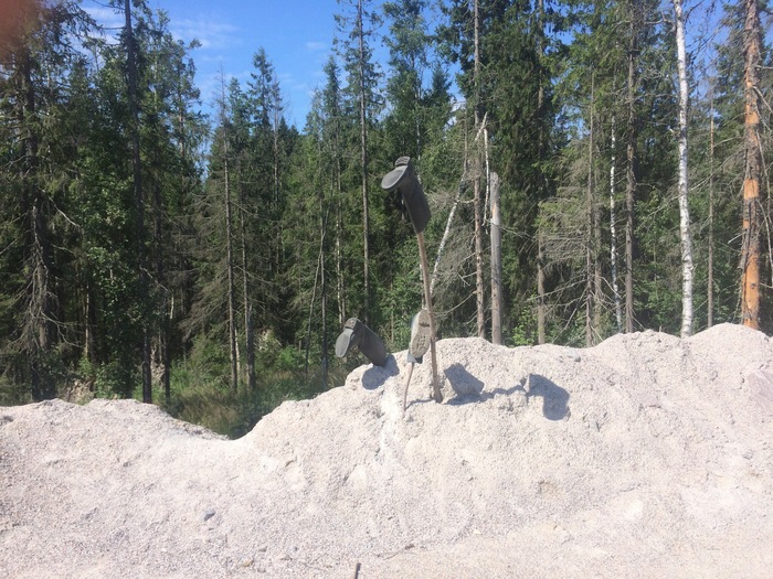 В общем, выйдя из леса к карьерной дороге, поворачиваем налево и идем до конца карьера, всё время держась левее.
