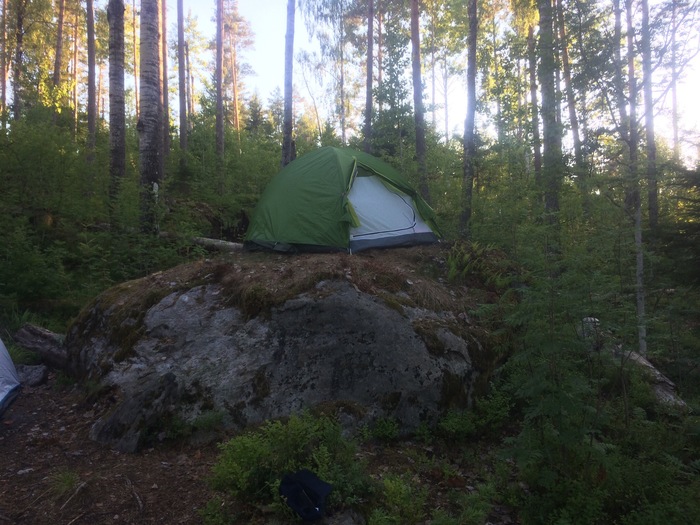 Ходили с 13 по 15 июля в поход, до известного Ястребиного озера возле поселка Кузнечное в Лен. области. Решил поделиться впечатлениями и рассказать о дороге, так как шли туда первый раз, отталкиваясь от письменных объяснений маршрута и карты, на форумах в тыртырнетах конкретики немного. Залью немного фоток, вдруг кому поможет (по факту маршрут очень простой и истоптанный, заблудиться сложно). В итоге от станции Кузнечное до лагеря на озере получилось 15км пешкодралом по лесу с рюкзаком в 30кг (обратно было легче, потому что всё тяжелое бухло было выпито за две ночи).