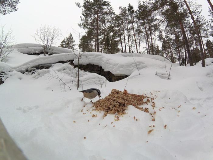 Спустившись, сделали первый привальчик, ибо +28 и рюкзак, а сколько нам ещё идти не знали. Далее по лесу на деревьях до самого Ястребиного озера будут метки баллончиком: красные, зеленые, белые, - идя по ним, невозможно заблудиться (спасибо, добрые люди!).