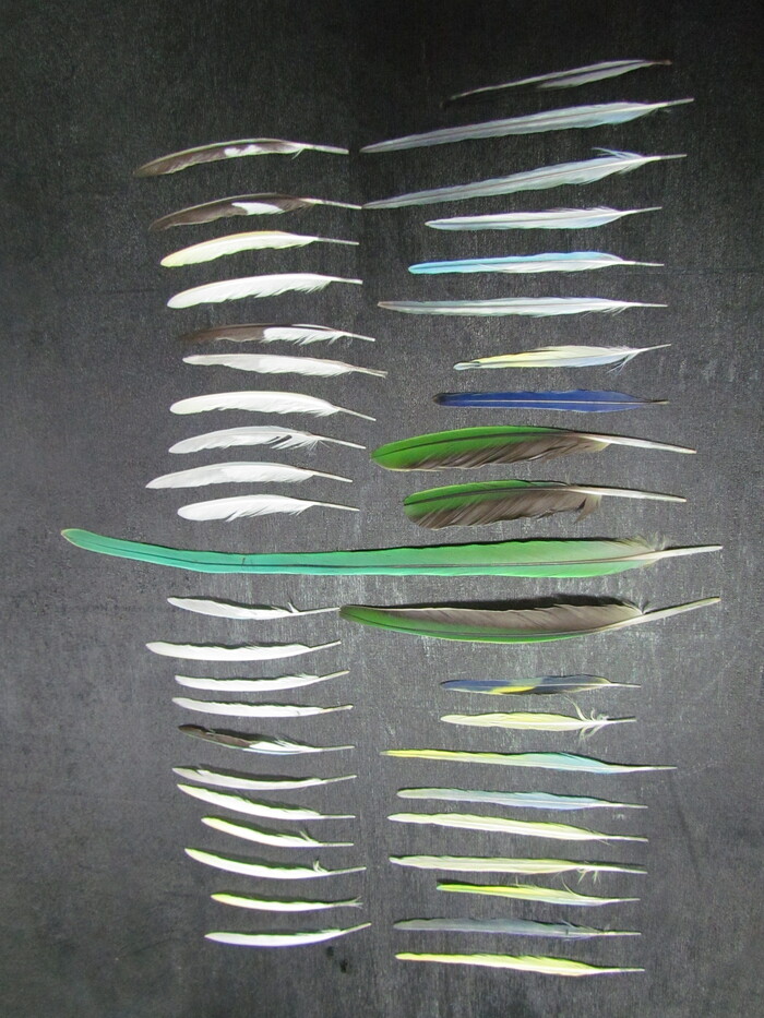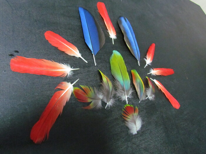 Далее - микс перьев различных видов мелких попугаев. Пригодятся для создания небольших ловцов или для ярких акцентов в работах побольше. Все перья - линька