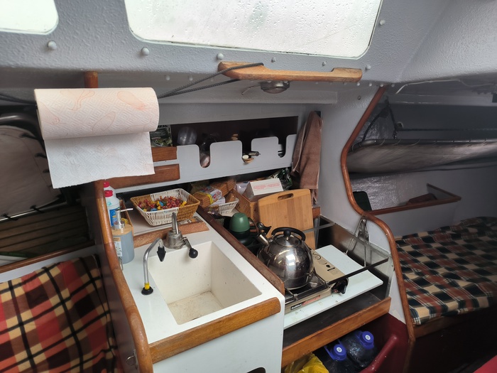 Яхта средних размеров, просторная, с достаточно большой кухней, на которой постоянно трудился наш повар – одновременно несколько блюд при качке не всегда получалось готовить, потому на дела кухонные уходило много времени.