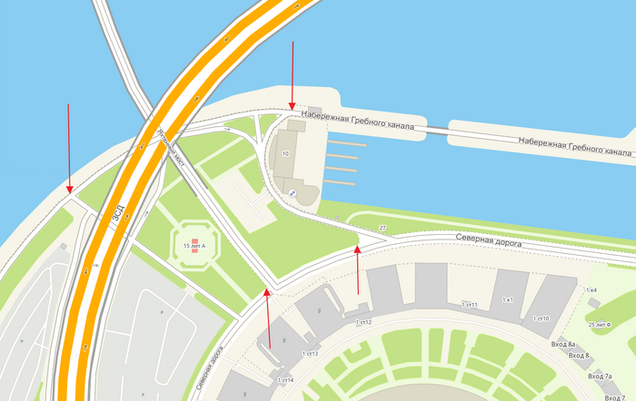 «Зенит» и Яхтенного моста к входным группам стадиона «Газпром-Арена»