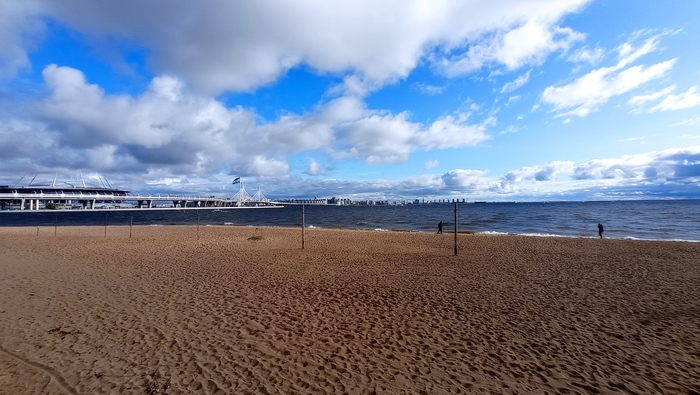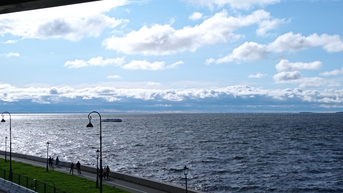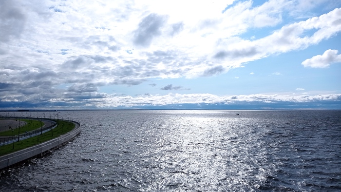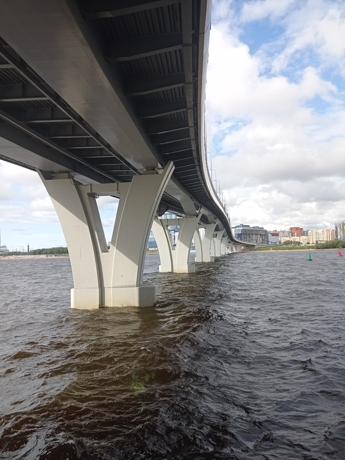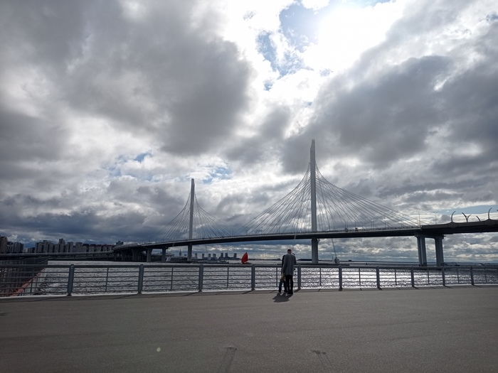 Ладно, про пейзаж была шутка :) Вид на Залив, южный берег Невской губы, Кронштадт и Морской порт достоин того, чтобы прогуляться по этому мосту.