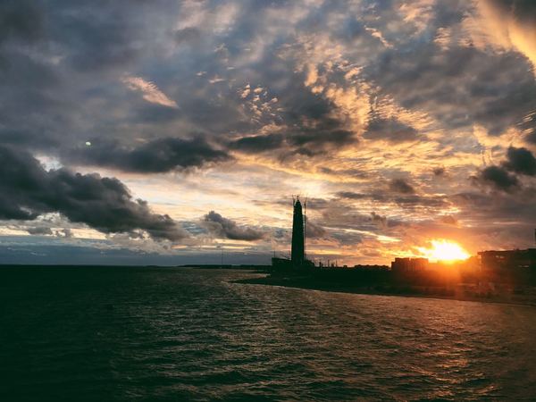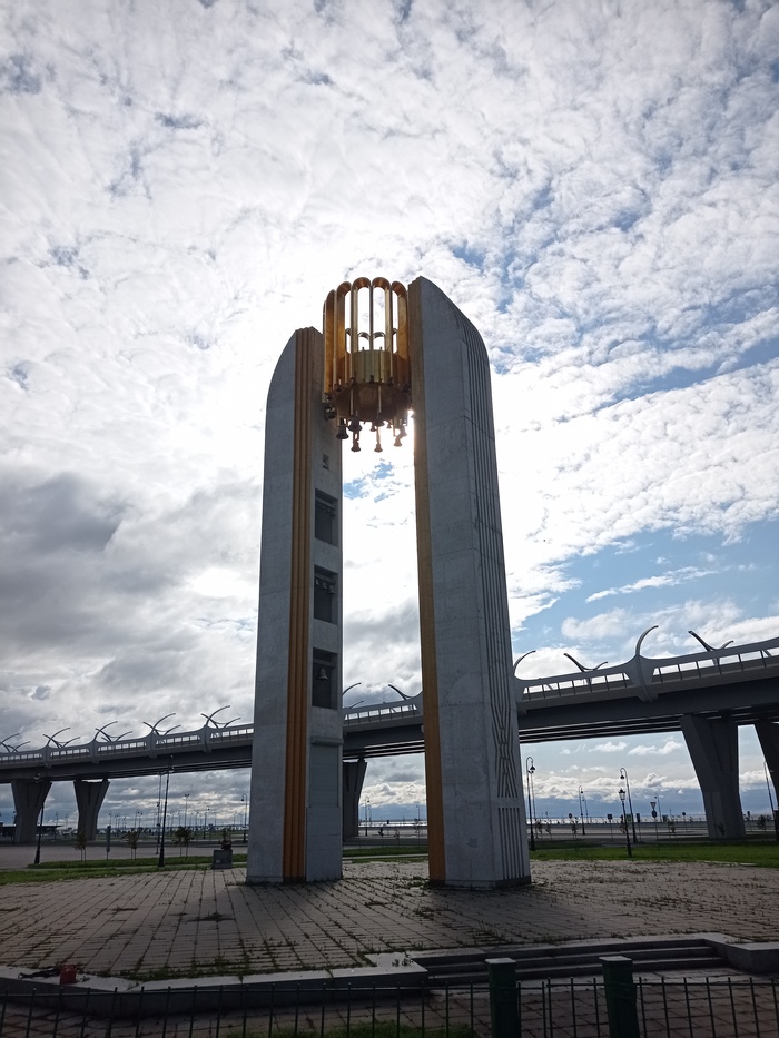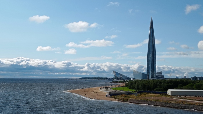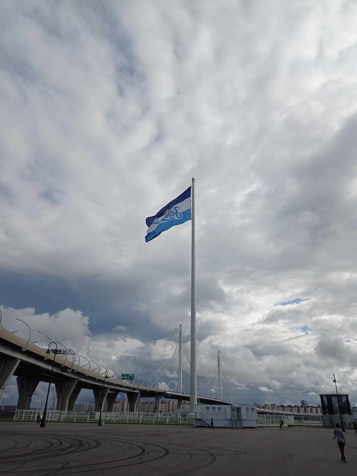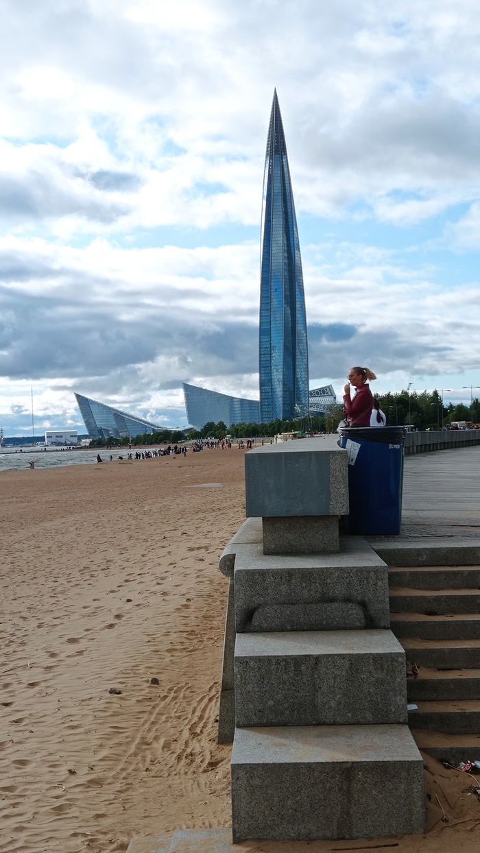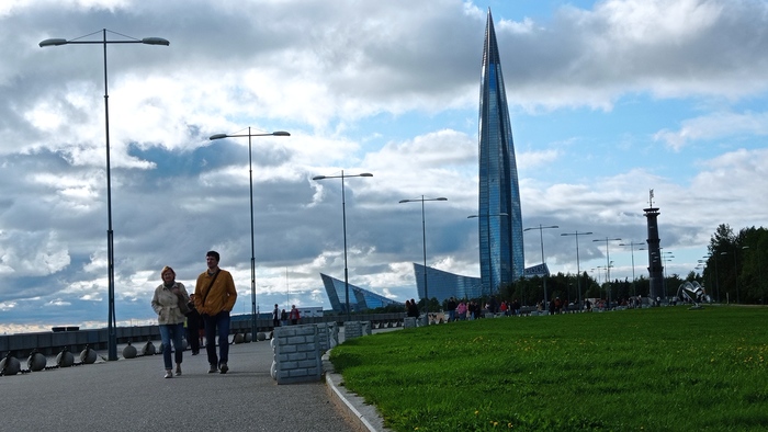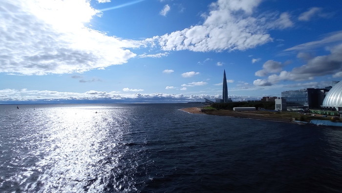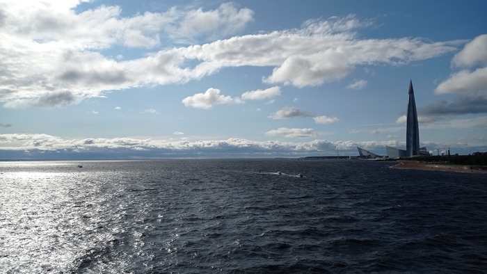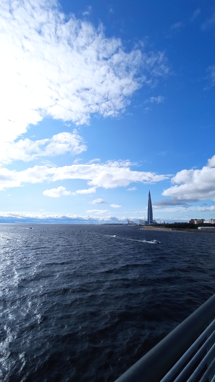 С моста открываются воистину прекрасные виды на огромную башню Лахта-центра...