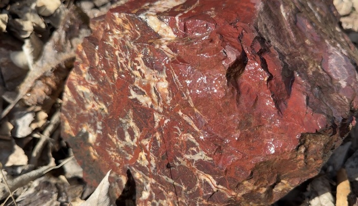 Но главное — это сама яшма! На месте мы обнаружили невероятно интересные образцы. Представьте себе: камни глубокого, тёмно-красного, почти тёмно-фиолетового цвета! Это было поистине захватывающее зрелище! Темно-красные и фиолетовые тона пересекались с чёрными прожилками, образуя замысловатые, почти абстрактные рисунки. А ещё — тонкие, элегантные жилы белого цвета, словно тончайшие нити серебра, пронизывающие весь камень.