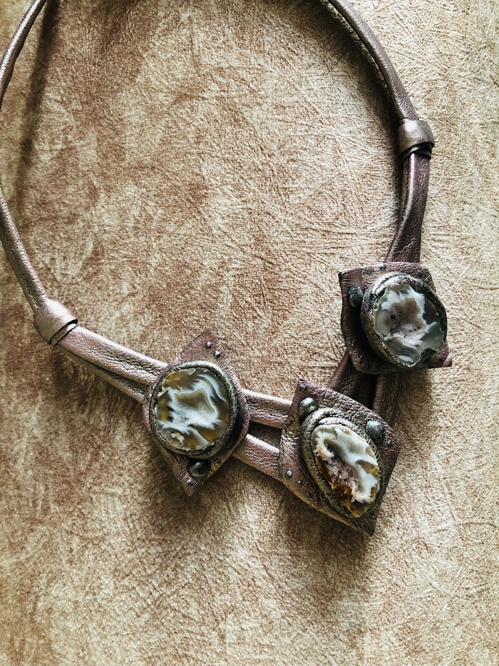 В работе использованы кабошоны из океанической яшмы и амазонита