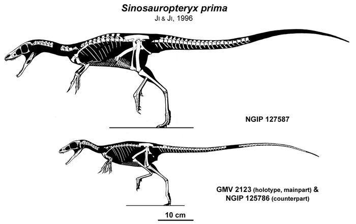 Вот так двигался наш ящер. Реконструкция по двум останкам признанных образцами для рода Sinosauropteryx.