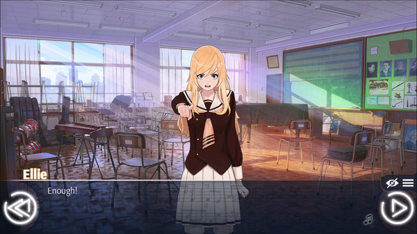 Геймплей: О гемплее много говорить не придется, внимательно читаем текст с плавно меняющимся визуальным фоном, иногда игроку предоставляется право выбора действия или реплики, от выбора которых получаются разные концовки.