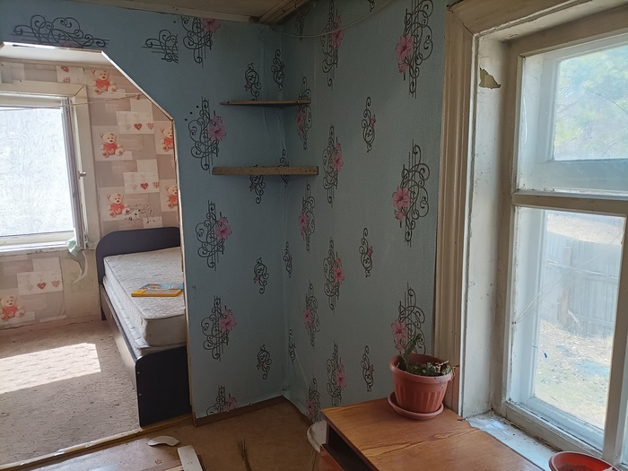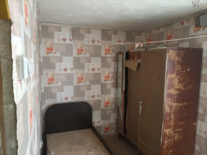 ну что, избавляемся от хлама, благо его немного, да сдираем обои.
