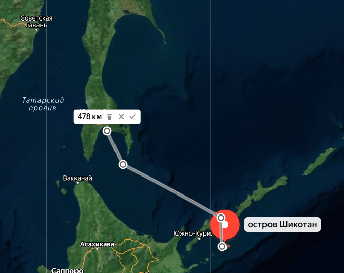 Расстояние до Сахалина около 500 км