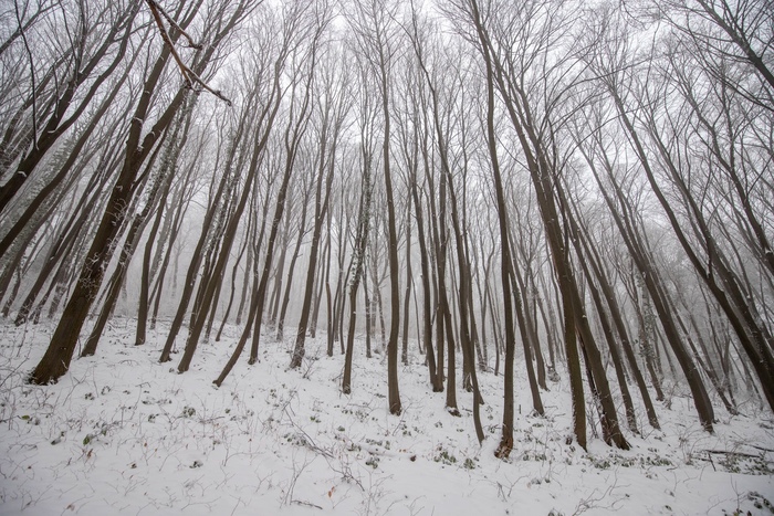 В этом году снег тут был несколько дней всего, а что б красиво и того меньше. Повезло успеть. Туман (или низкие облака, я так и не понял) прибавил загадочности, хотя и разочаровал в том плане, что с обзорной площадки видимость была лишь 15-20 метров.