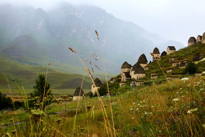 Даргавс – таинственное «поселение» в Северной Осетии, расположенное в живописной долине между Куртатинским и Кармадонским ущельями. На первый взгляд – горная деревушка. Зелёный холм, усыпанный белыми домиками. Но на самом деле...