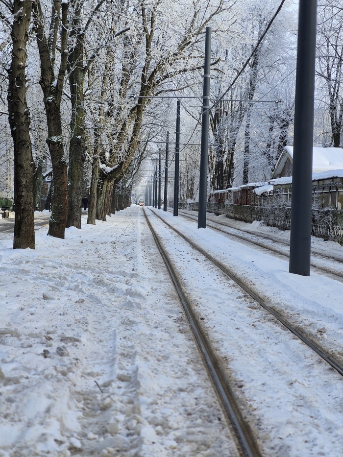Трамваи, Амалиенау, морозный Калининград