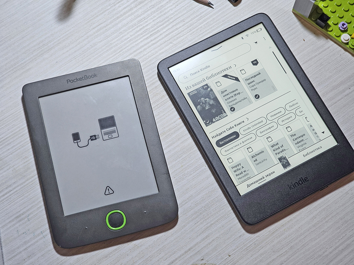 Второй претендент – Kindle 2024. То есть самый простой и недорогой (11-12-13 тысяч у перекупов на Озонах-ЯндексМаркетах) заморский ридер. Киндлы обычно страшно нахваливают в обзорах: мол, очень простые и удобные в использовании, после них любой другой ридер – поделка «от инженеров для инженеров» (а не «от людей для людей», как должно быть в идеале). Я даже в какой-то момент подумал: а может и… да? Тем более что я весьма чувствителен к цвету вещей, и не сильно люблю черный цвет, а Киндл 11 бывает красивым зелененьким. Плюс экран у него классный – 300 ppi.