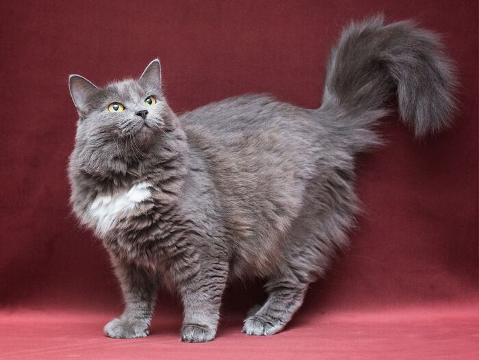 Полуторогодовалая. Невероятно пушистая, с красивой серо-голубой шерсткой и взглядом настоящей королевы.