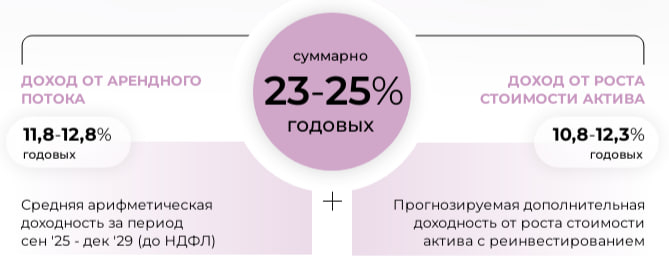 Данный фонд с ТРЦ Триумф относительно свежий, и цены пая ещё относительно невысокие. Вообще у Паруса их довольно много. Доходность обещают 23-25%. Но разумеется, держим в голове, что примерно половина дохода будет идти от арендны, и должна быть относительно стабильна и даже расти с годами. А вторая половина - рост самого пая, и тут уж как повезет. Но в теории, если все хорошо с арендными платежами, то и стоимость паев будет постепенно расти.
