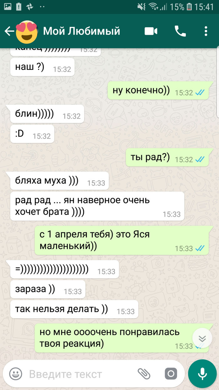 - (Г) Это Кевин с Перенатального Центра. По поводу вашего запроса. Я звоню Вам сообщить, что результаты вашего теста положительны. Поздравляем Вас!!!