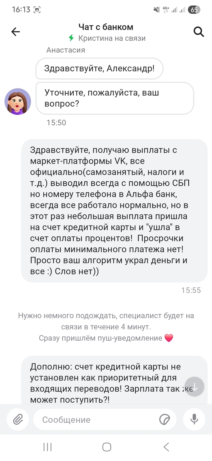 Ребята, я просто офигел от комиссий альфа банка и то как они относятся к своим клиентам, между прочим я их клиент лет 15 минимум.