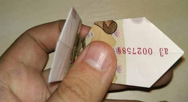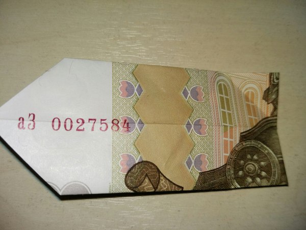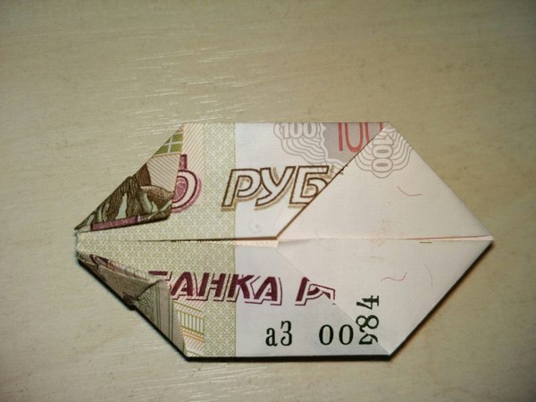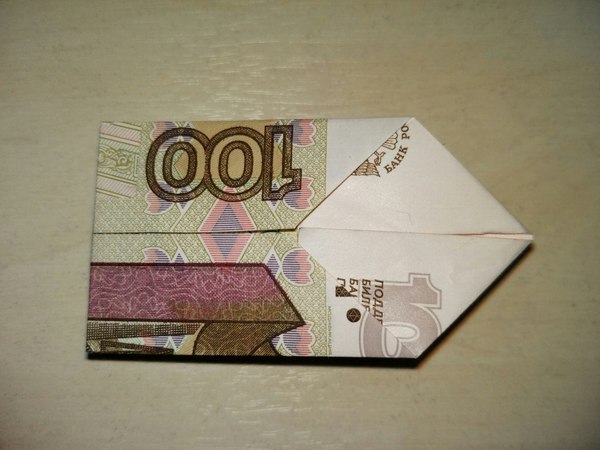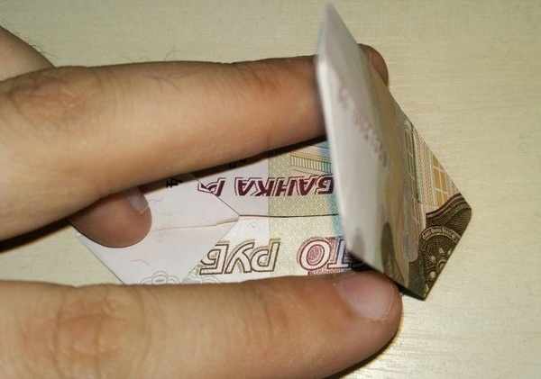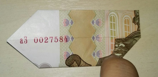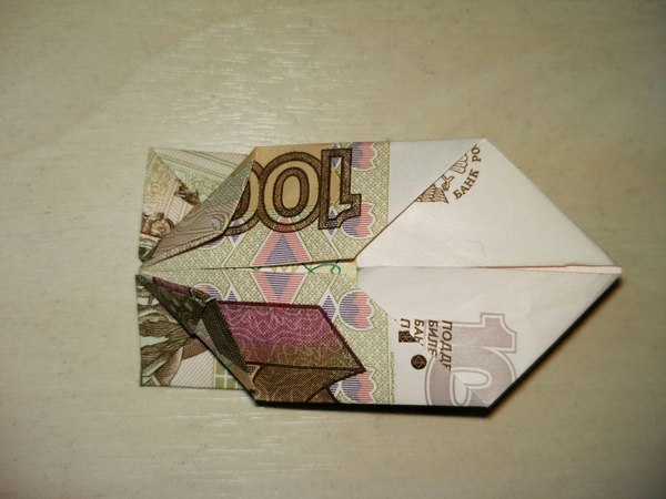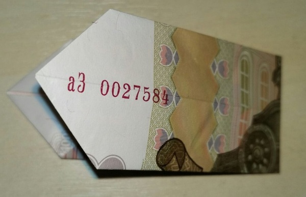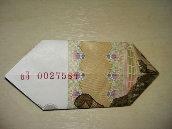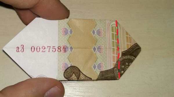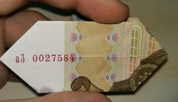 3. К полученной средней линии загнем все четыре уголка купюры: