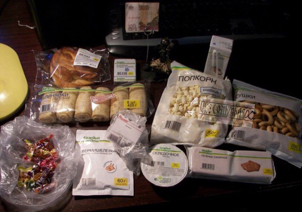Я размышлял над формулой максимально полноценной покупки на сторублёвую банкноту, и мои поиски привели меня к Ашану. Задача была такова - набрать еды "каждый день" столько, сколько возможно, и избегать лёгких мишеней вроде бичпакетов (которые уг и не окупают себя).