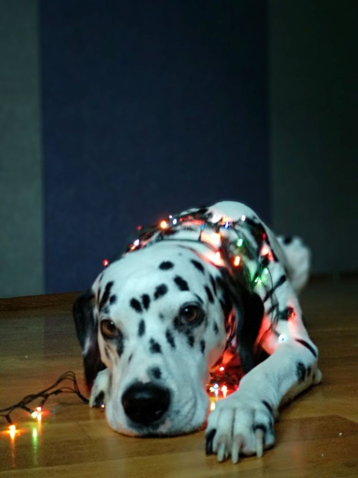 Трудно усадить эту пятнистую юлу, но вкусняшка на заднем плане сделала свое дело 😀
