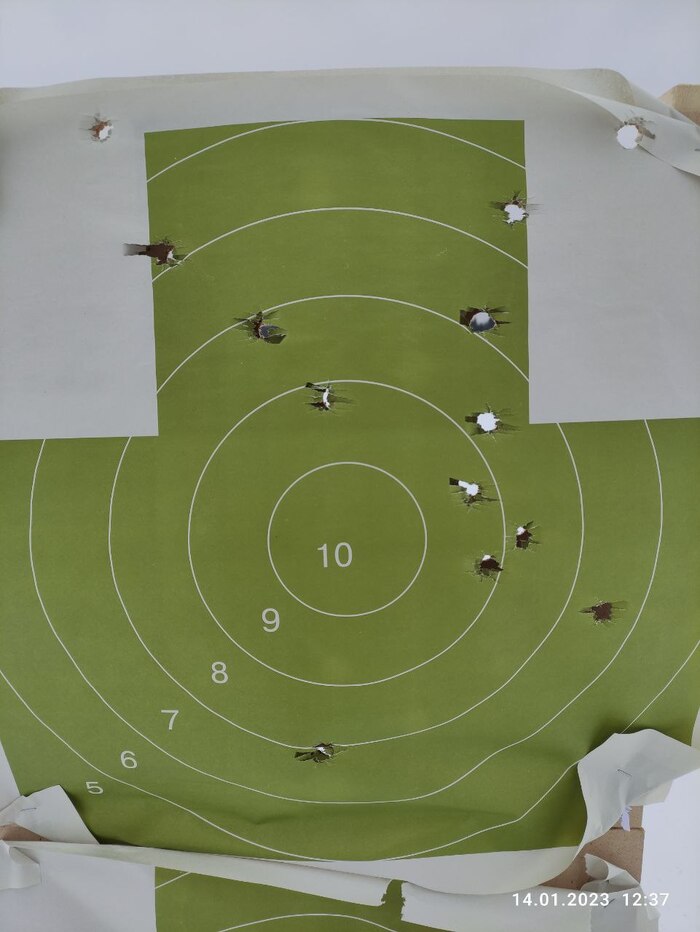 Пули УНО-28 на порохе Сокол 1,8 г. кучно влетели возле 7-ки, точки прицеливания.