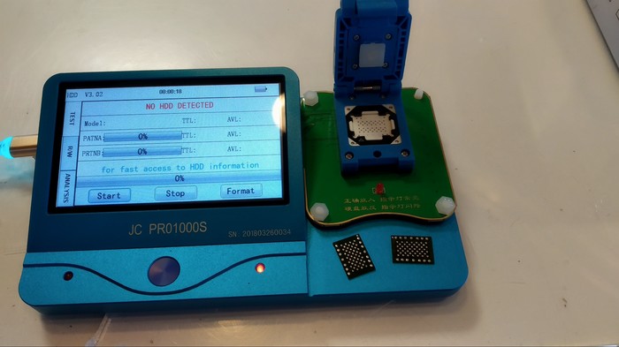 Тут можно всё делать даже без программатора, так как биос всё равно увидит накопитель, но я же решил не тратить время и пропустить установку винды и дров и считал полный фулл памяти через прогер: