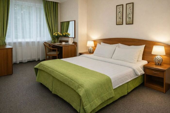 Курортно-развлекательный комплекс с просторной территорией и продуманной концепцией отдыха. Порадуйте любимого человека ужином в ресторане, расслабляющим массажем в спа-комплексе и романтичным катанием на коньках. А может, вам и вовсе не захочется выходить из уютного номера — тогда насладитесь тишиной, уединением и отличными видами из окна.