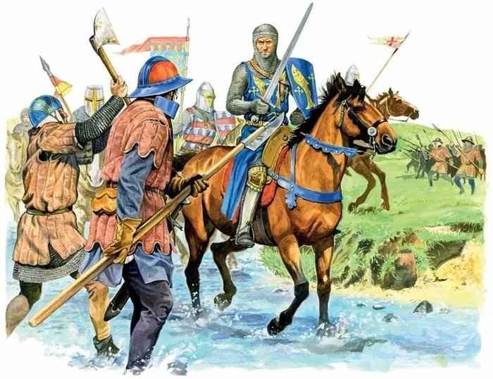 В XIV в. в европейском военном деле происходят серьезные изменения, связанные с повышением роли пехоты (стрелков и пикинеров). Появляются большие наемные армии, которые отличаются от феодального ополчения лучшей дисциплиной и управляемостью на поле боя. Рыцарство как военное сословие первым ощутило эти изменения.