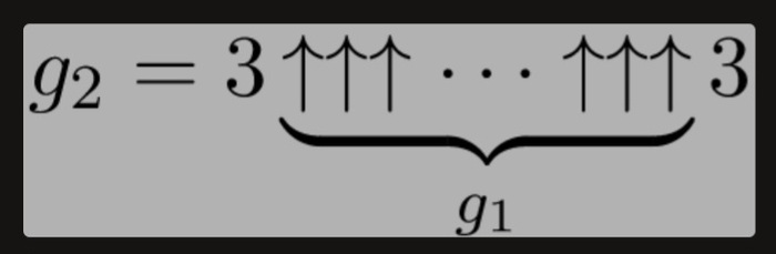 В числе g2 содержится g1 число стрелок. То есть всё то, что мы рассчитывали и представляли ранее — все эти «башни», которые не помещаются ни в какие Вселенные, — всё это только количество стрелок в числе g2.