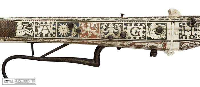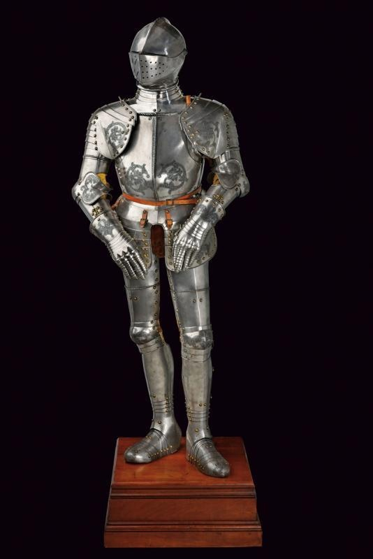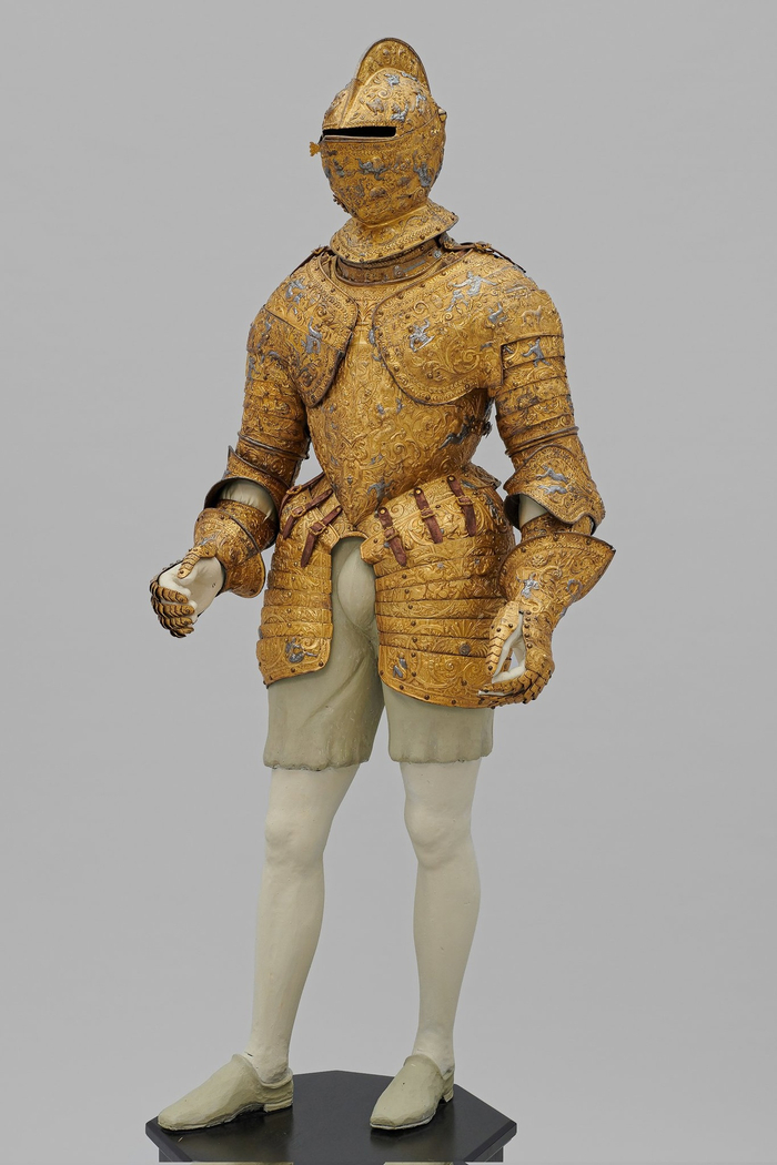 Этот шлем изготовлен ориентировочно в 1529 году Конрадом Зойзенхофером, когда-то принадлежал к полному турнирному доспеху.