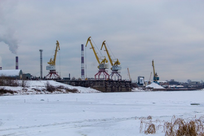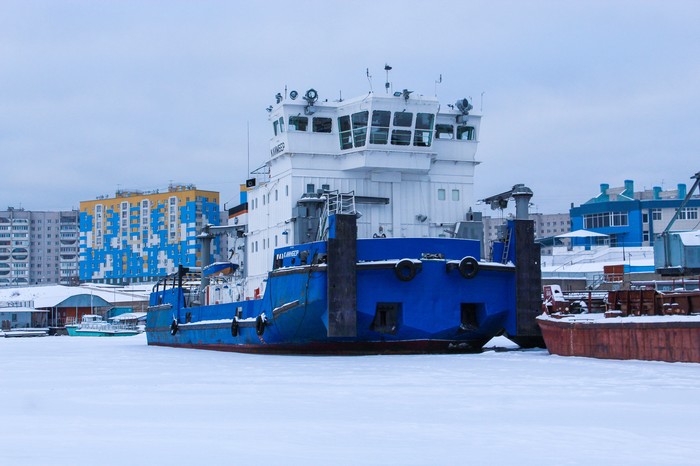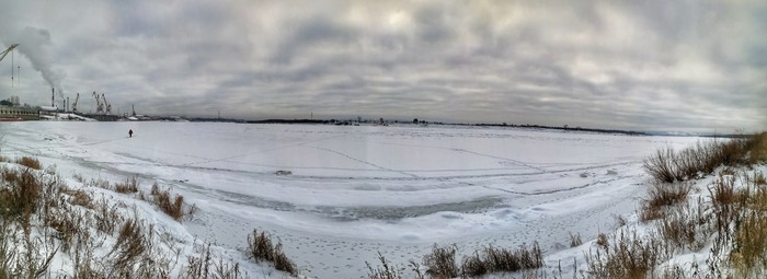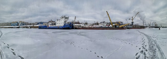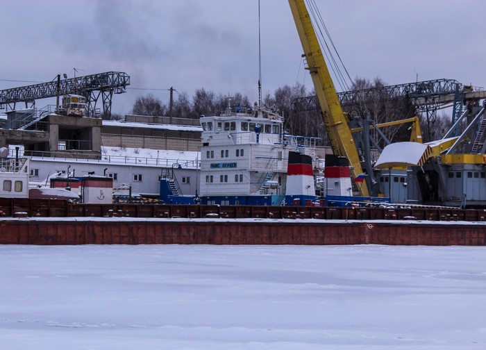 Встал лёд на реке, и я пошел пройтись в районе речного порта, благо от дома он всего в 100 метрах)